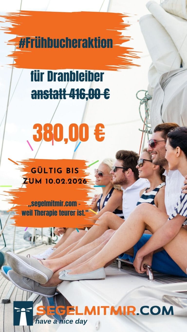 - Du meldest dich rechtzeitig über unsere APP zu deinen Segelwunschtermin an. (Die Plätze können auch ausgebucht sein je nach Buchungssituation.)
