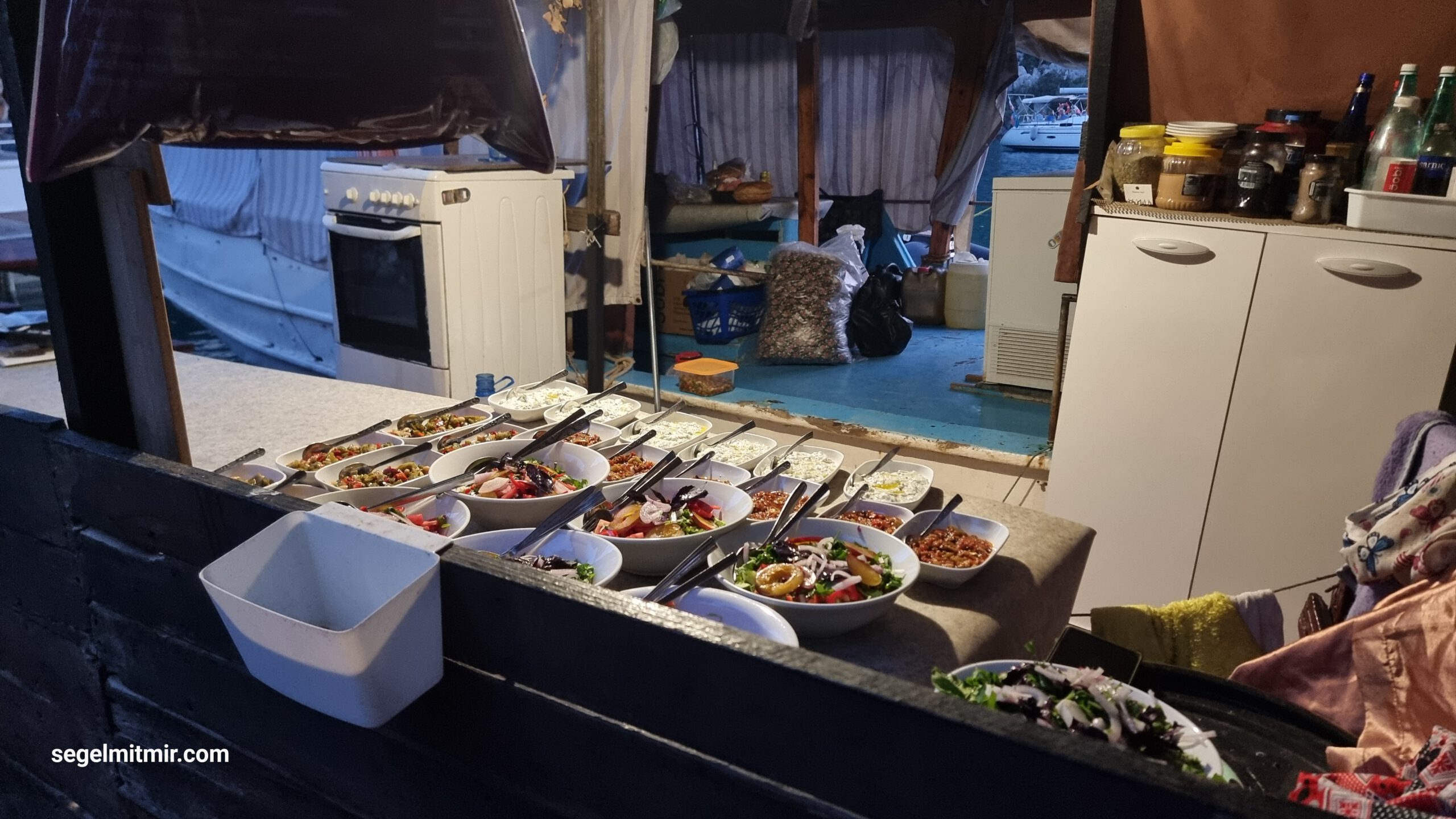 Sobald das große Migros-Schiff in der Nähe vor Anker geht, können wir mit unserem Dhingi heranfahren oder uns mit dem Shuttle-Beiboot von Migros abholen lassen. Wir decken uns mit Vorräten ein – ohne zusätzliche Kosten! Auch die kleineren Versorgungs-Schiffe oder private Boote mit Speisen und Getränken kommen direkt zu uns und versorgen uns mit frischen einheimischen Produkten.